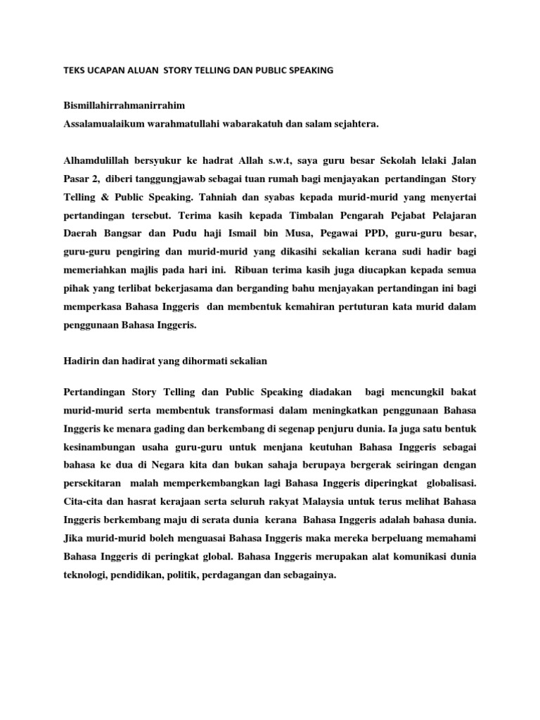 Teks Ucapan Aluan Dalam Majlis Pertandingan Story Telling Pdf